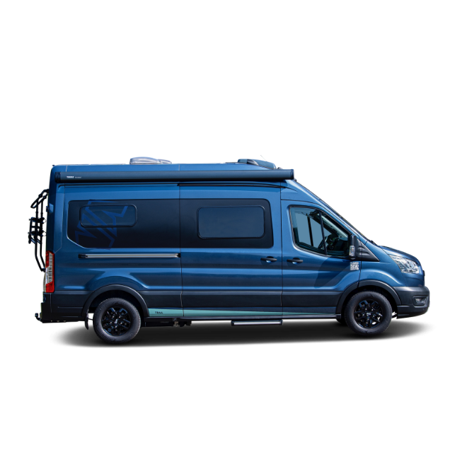 Der Mooveo auf Ford Transit Trail Basis mit geräumigem Bad, großem Kühlschrank, und toller Küche für 2-3 Personen sowie großem Kofferraum.
