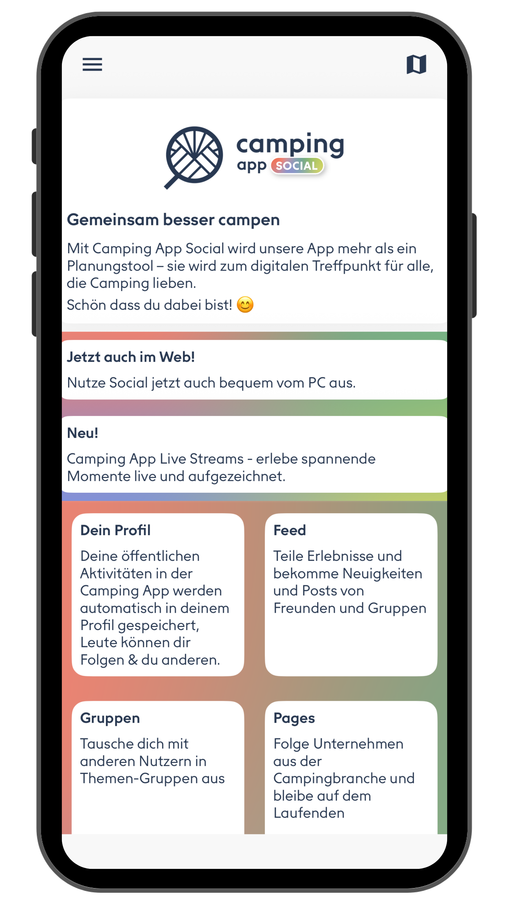 Camping App Social ergänzt klassische Camping-Apps um eine soziale, gemeinschaftliche Perspektive.
